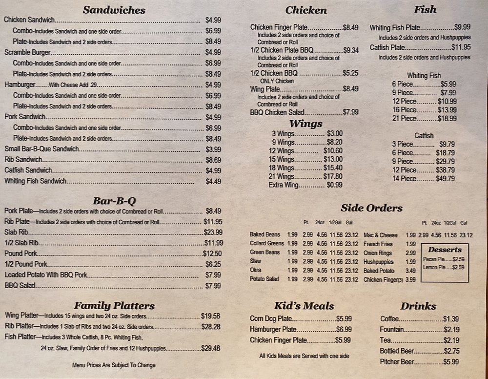 Located in Oxford, Alabama, Brad's Bar-B-Que is a no-frills Southern gem known for its delicious barbecue and diverse menu options. Offering takeout, delivery, and even vegetarian choices, this casual spot is perfect for groups, families, and even kids. The reviews speak for themselves, with customers praising the moist and flavorful chopped pork, BBQ chicken, and homemade BBQ sauce. The sides, including okra, green beans, and cornbread, are also highly recommended. Don't miss out on the creamy mac and cheese, tasty wings, and whole fried catfish - a true southern delicacy. The welcoming ambiance, reasonable prices, and homemade desserts make Brad's Bar-B-Que a must-visit spot for both locals and travelers alike. Experience the taste of the South at Brad's Bar-B-Que today!